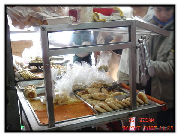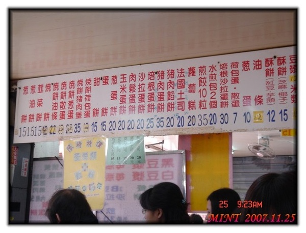雖然人潮不斷,但還有空座位,所以跟勳點了杯豆漿跟水煎包,然後把勝利早點拿出來一併嗑掉~