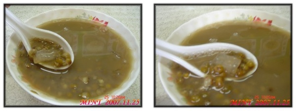 翻炒過再烹煮的綠豆,帶有些許焦味;而加了米漿的綠豆湯顏色也比一般來得深,味道也來得香,